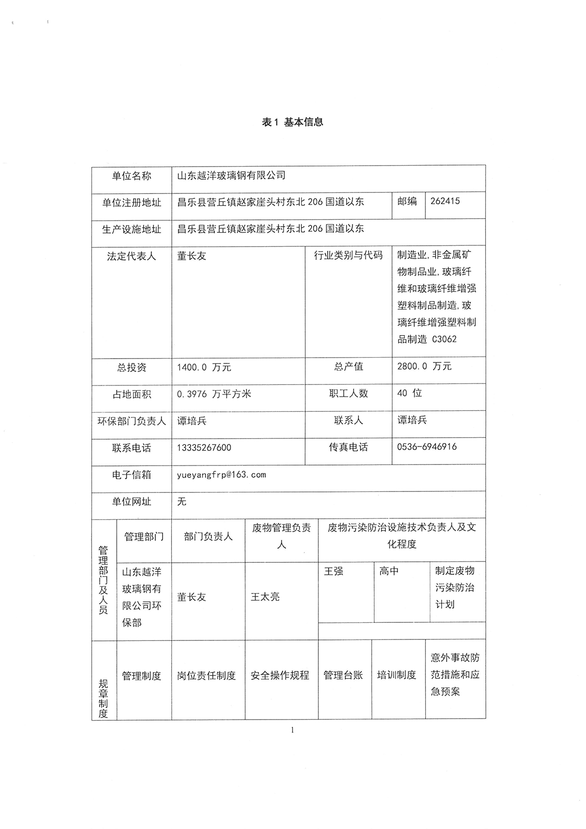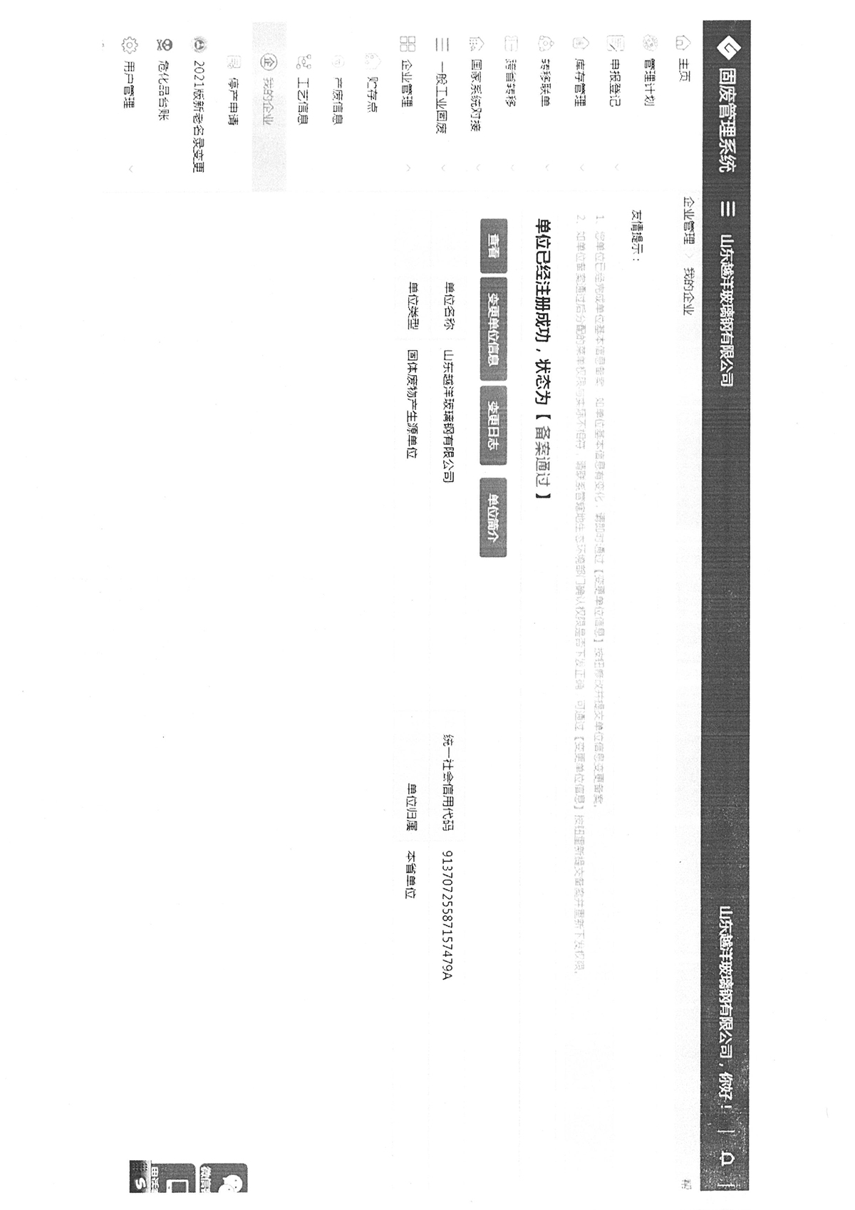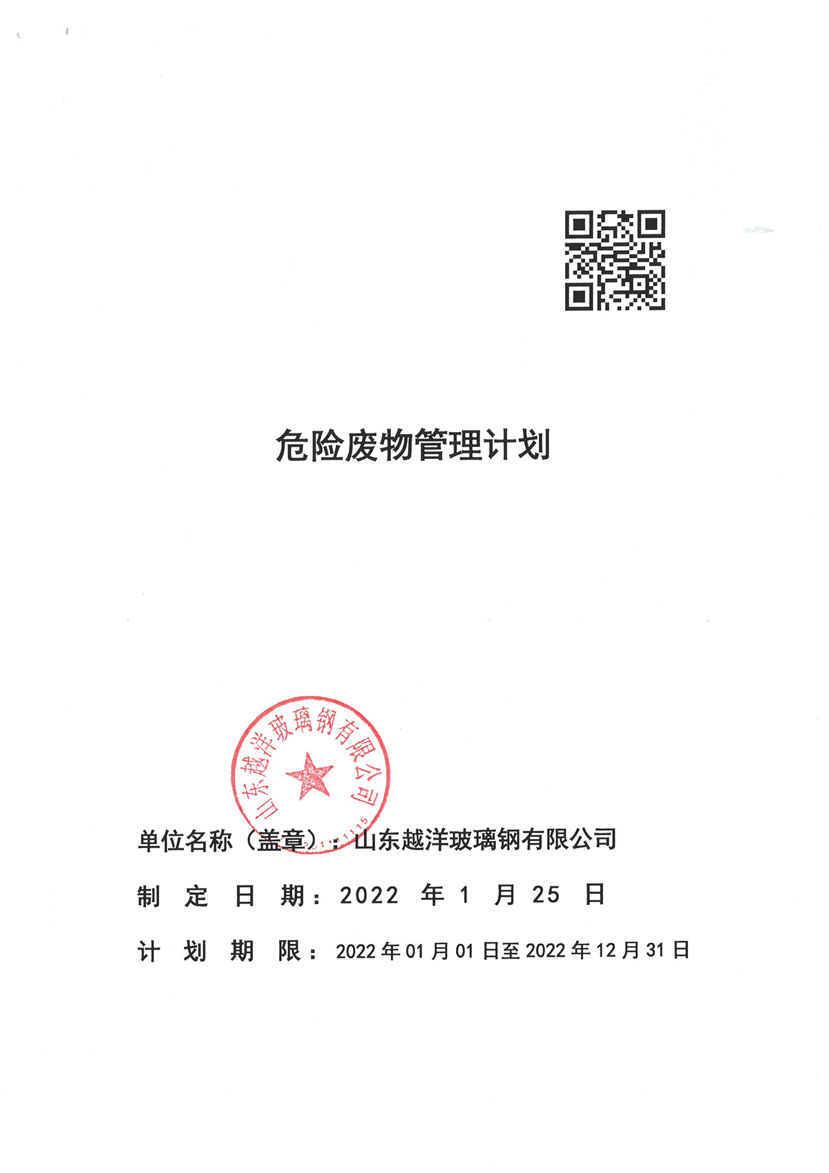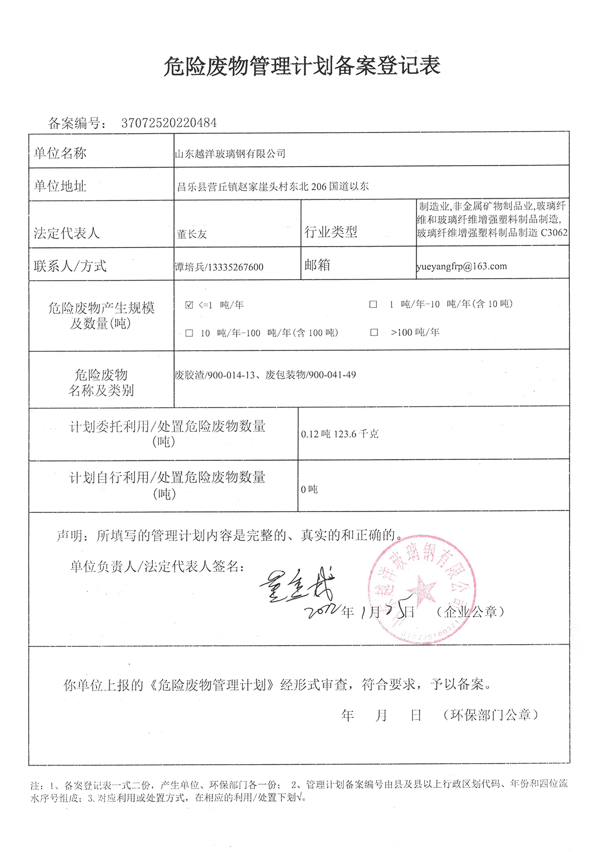 越洋玻璃钢2021年度危险废物管理计划及备案登记公示