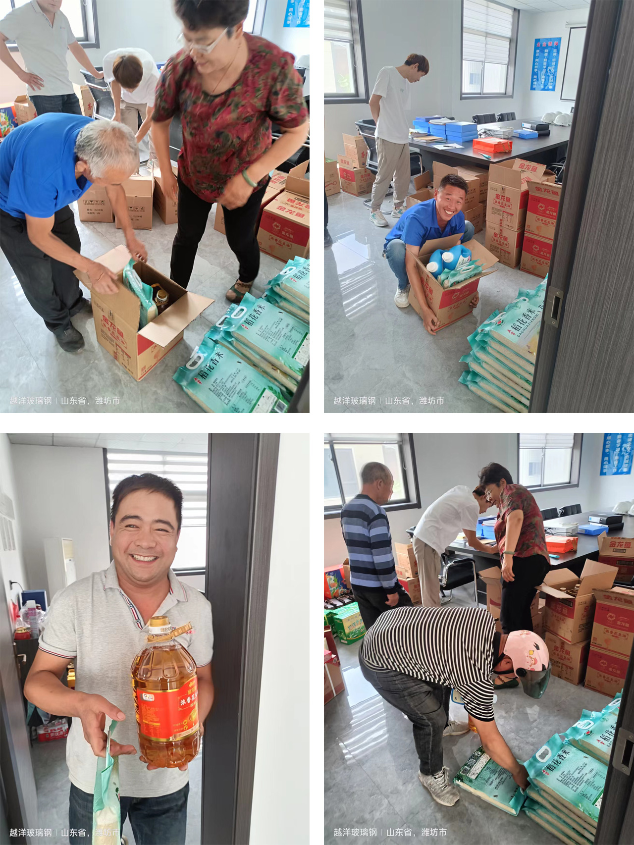 八月十五月儿圆,阖家欢乐共团圆。一年一度的中秋佳节即将来临,山东越洋玻璃钢有限公司为让员工感受到中秋佳节温馨、团圆的气氛,增添节日的喜庆,感谢员工的辛苦付出,为员工及员工家属送上问候及美好的节日祝愿,特在中秋佳节来临前,为全体员工发放中秋福利。