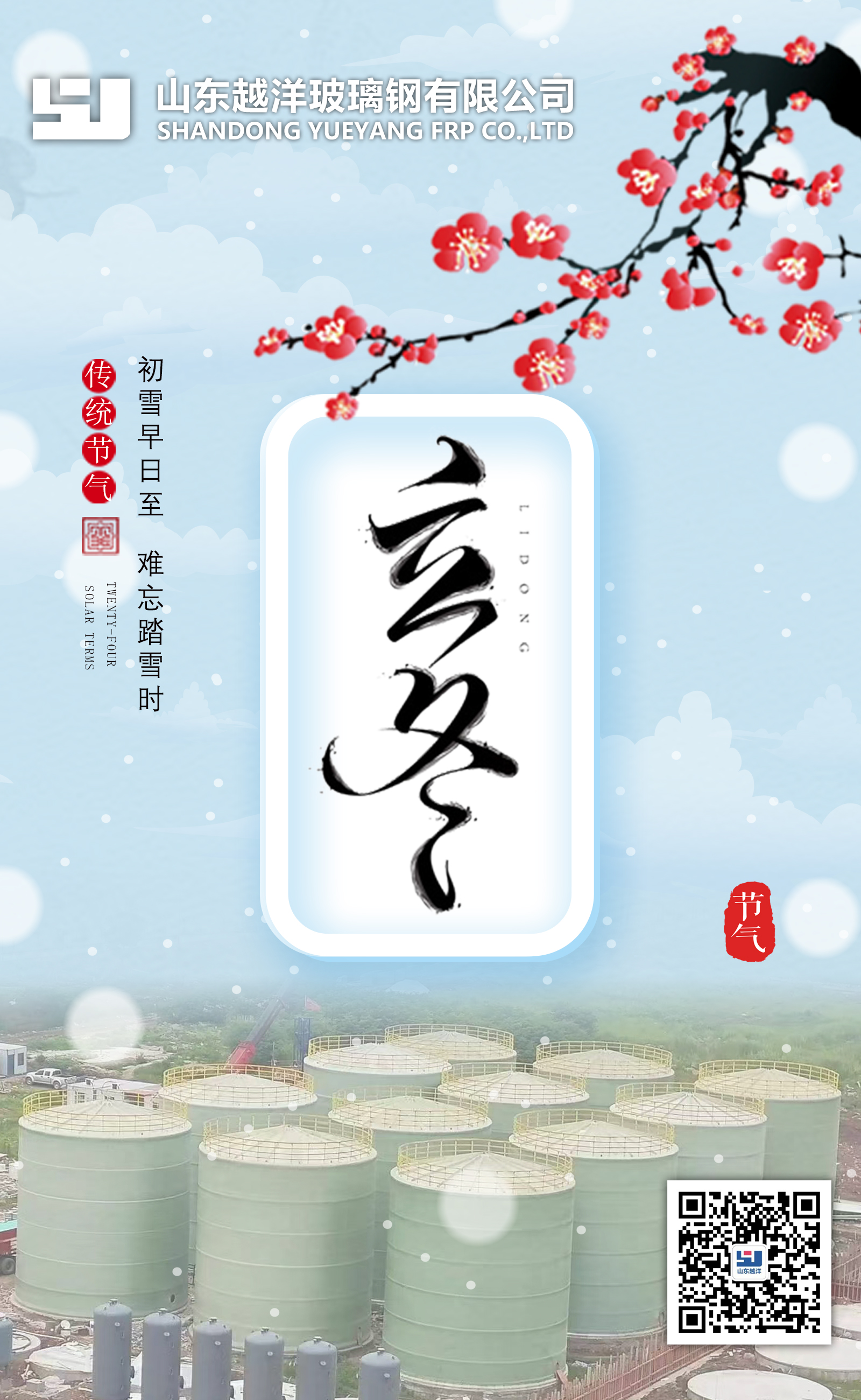 山东越洋玻璃钢提醒您:立冬,是二十四节气之第十九个节气,也是冬季的起始。立冬,意味着生气开始闭蓄,万物进入休养、收藏状态。其气候也由秋季少雨干燥向阴雨寒冻的冬季气候过渡。