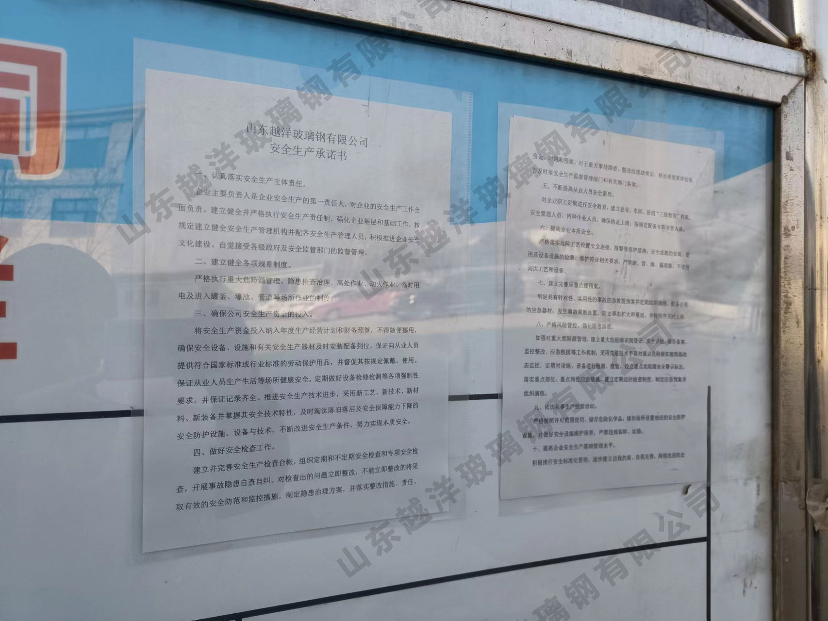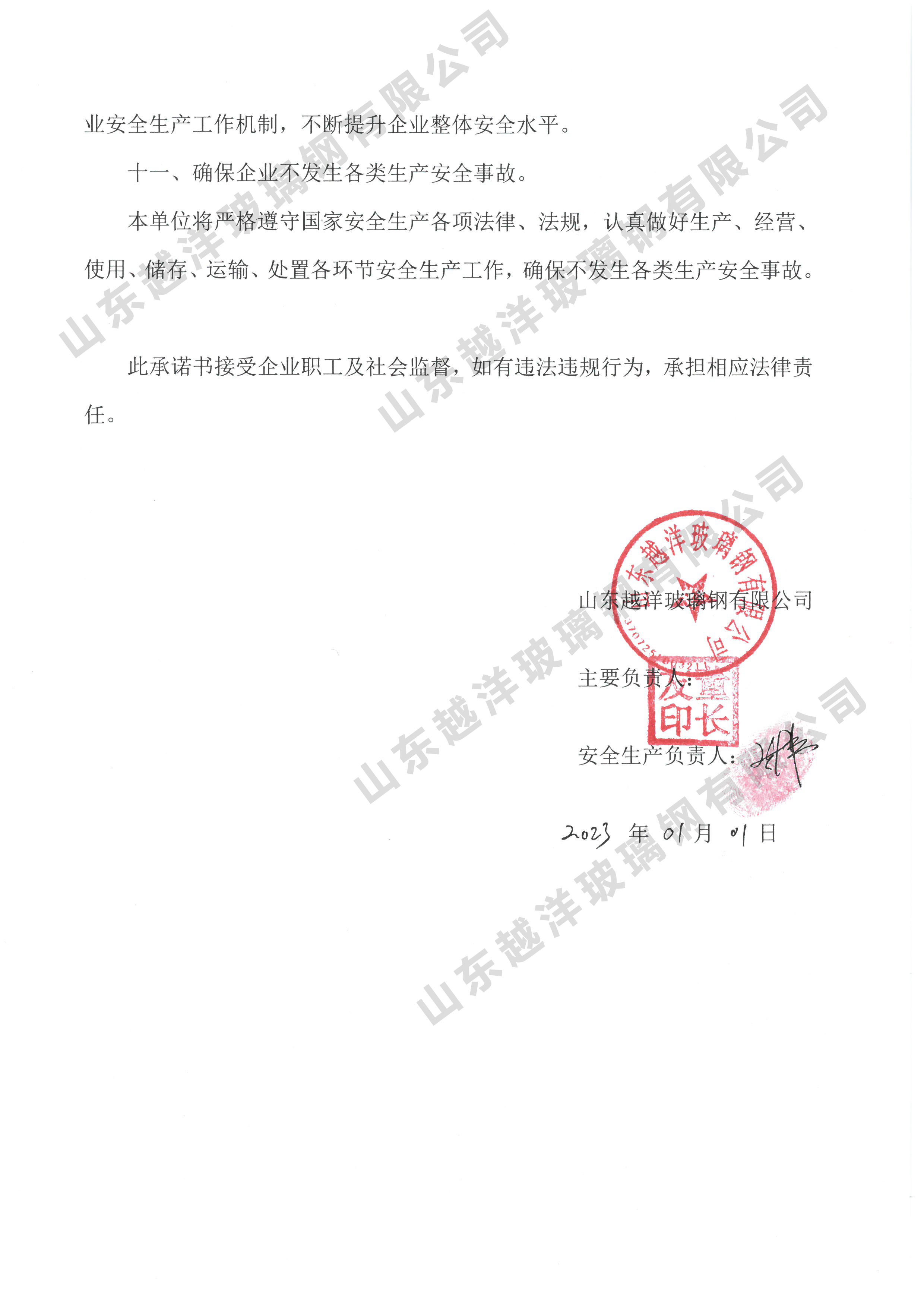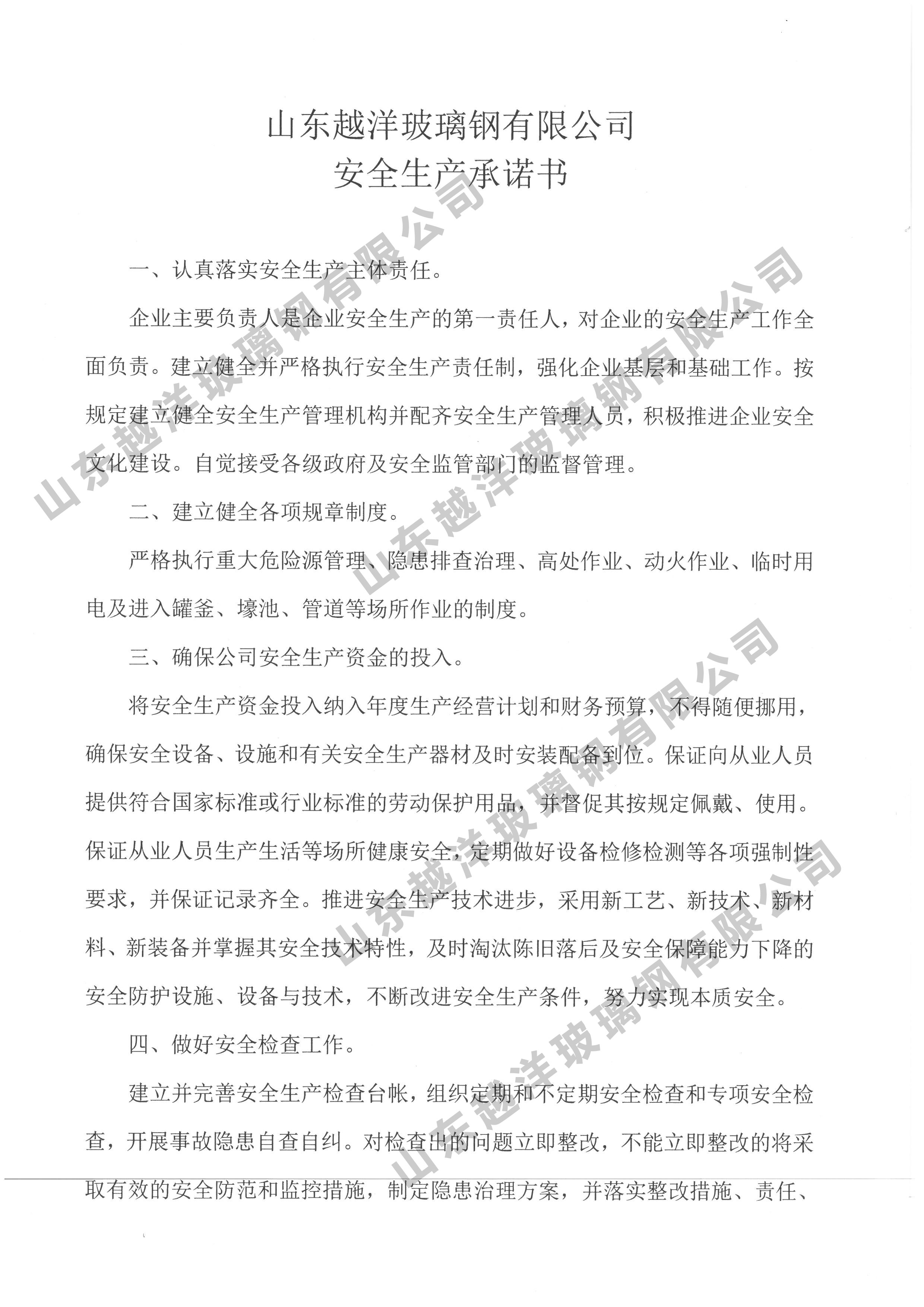 山东越洋玻璃钢有限公司 安全生产承诺书